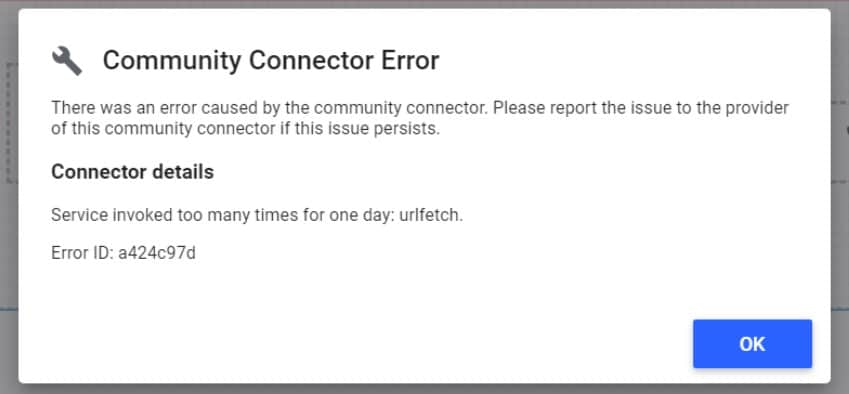 “Community Connector Error: Service invoked too many times for one day: urlfetch.”
