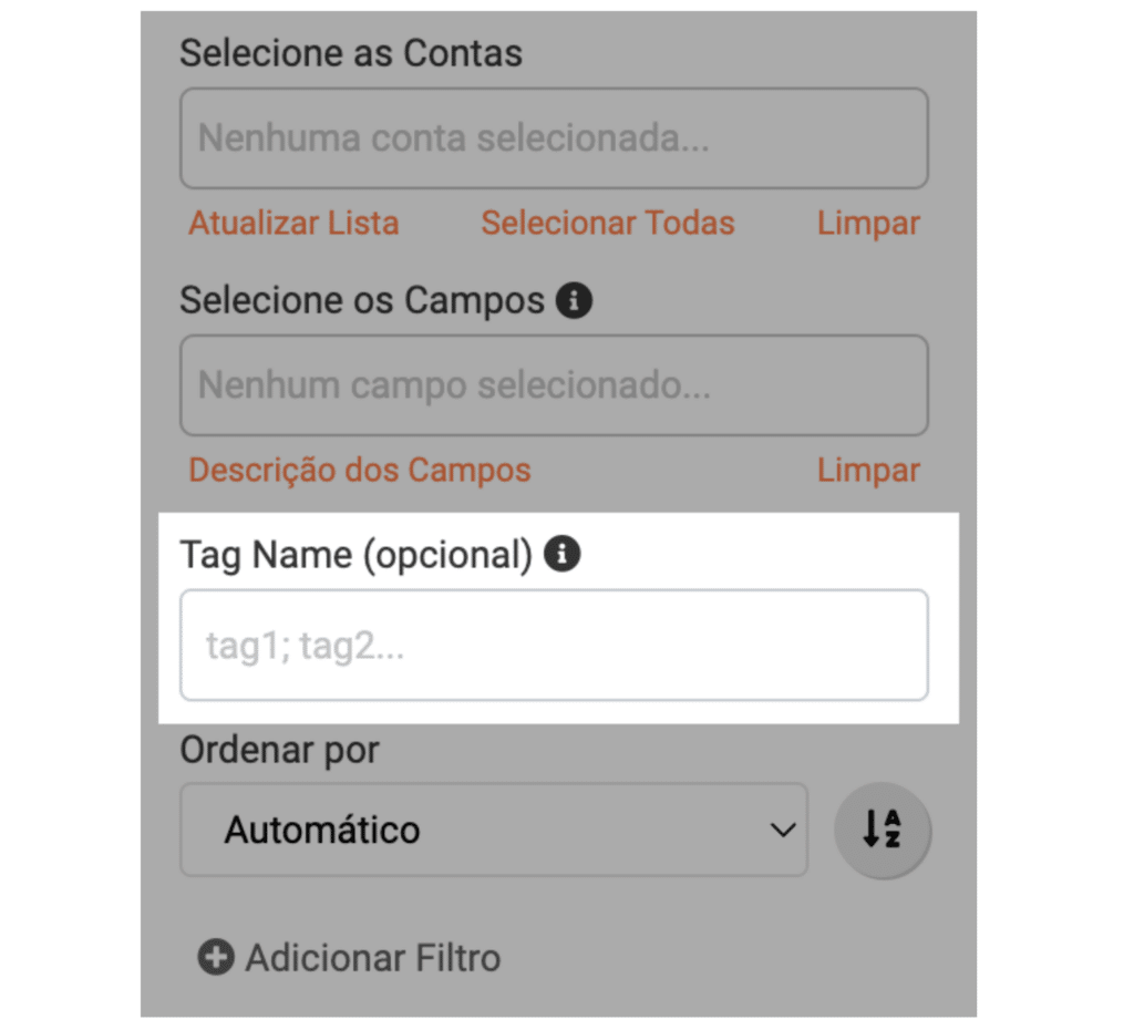 Essa configuração retornará apenas os contatos filtrados associados a essas tags.