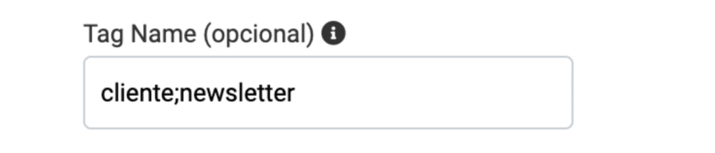 Para filtrar contatos que possuem as tags “cliente” ou “newsletter”, insira no campo Tag Name da sidebar separados por ponto e vírgula:1