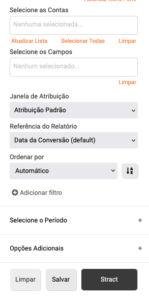 Na Stract é possível selecionar a janela de atribuição para sua query. Lembre que janelas de atribuição diferentes daquelas usadas nas suas campanhas e conjuntos de anúncios podem gerar divergências nos dados.