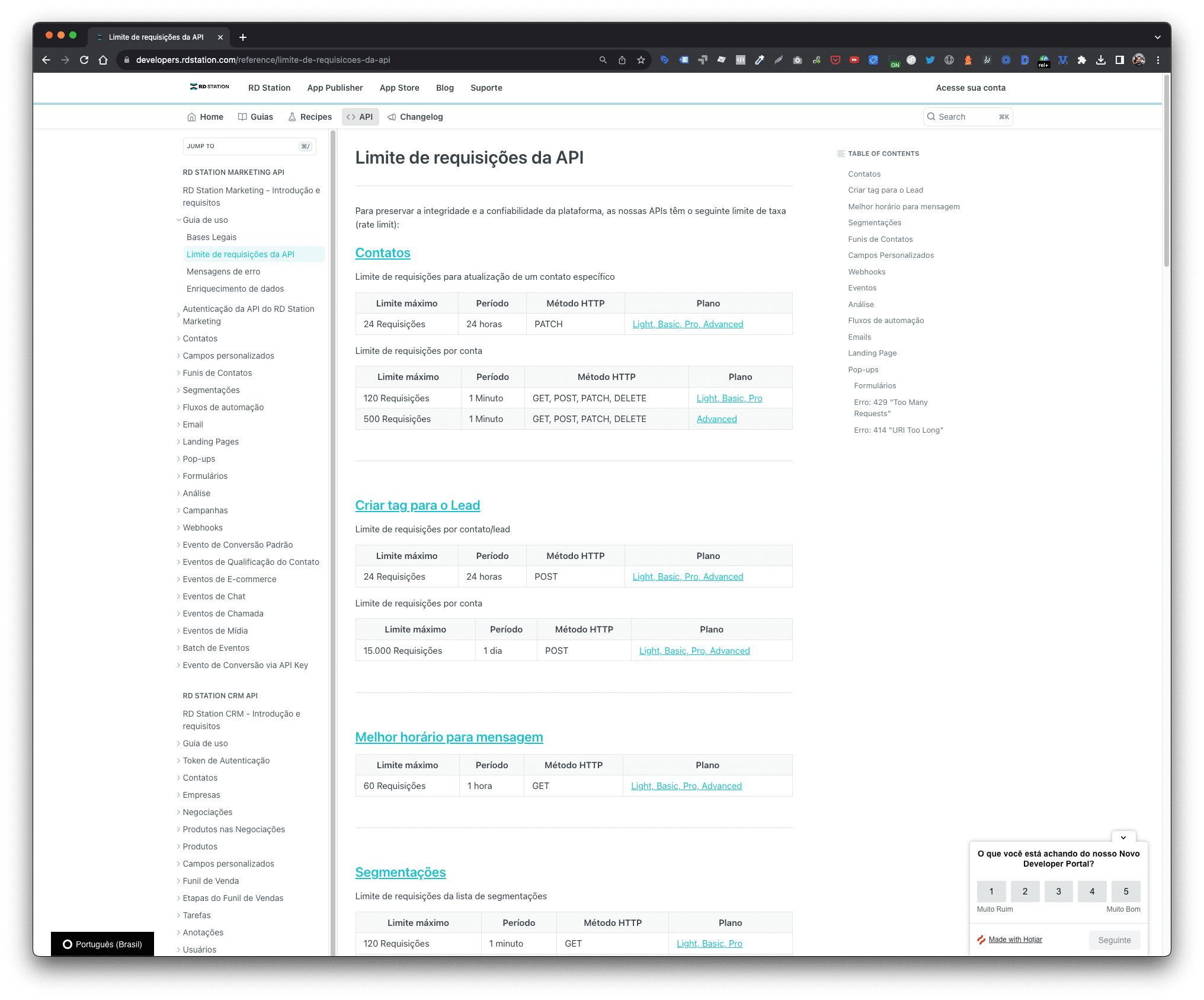 Veja também mais informações em Limite de requisições da API do RD e Estatísticas de E-mail Marketing da RD Station.